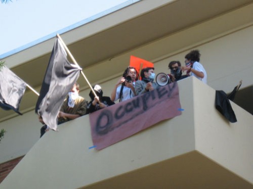 Približavanjem večeri na prostoru je sveučilišta stotinjak studenata postavilo šatore kao dio cjelonoćnog prosvjeda protiv rezanja proračuna, otpuštanja i povišenja školarina na kalifornijskom sveučilištu. Istovremeno su organizirane radionice na kojima se obrazuju o borbi za obrazovanje.