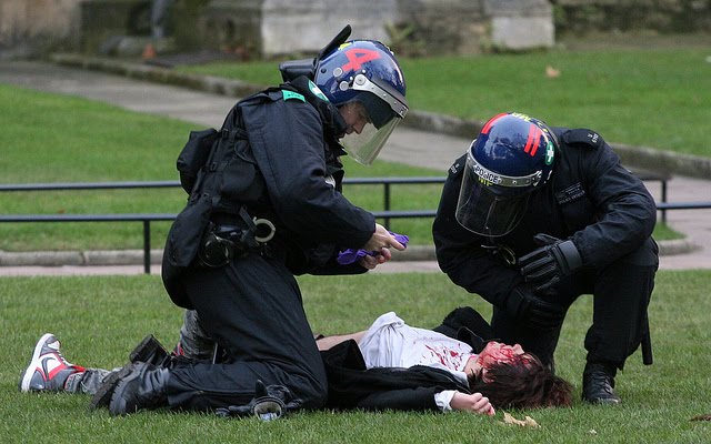 Nedugo nakon glasovanja u četvrtak, policajac je pendrekom udario po glavi jednog od mojih sadašnjih studenata diplomskog studija. Rekao je da je imao osjećaj da je udaren metalnom šipkom. Nakon što su mu drugi studenti zavili ranu te je pušten kroz policijski kordon zbog svojih očitih ozljeda, policijski su ga bolničari na brzinu pregledali i provjerili reagiraju li mu oči još uvijek na svjetlo. Prema riječima mog studenta, preporučili su mu da sam nađe put do lokalne bolnice u Sjevernom Londonu, gdje je dobio šavove.