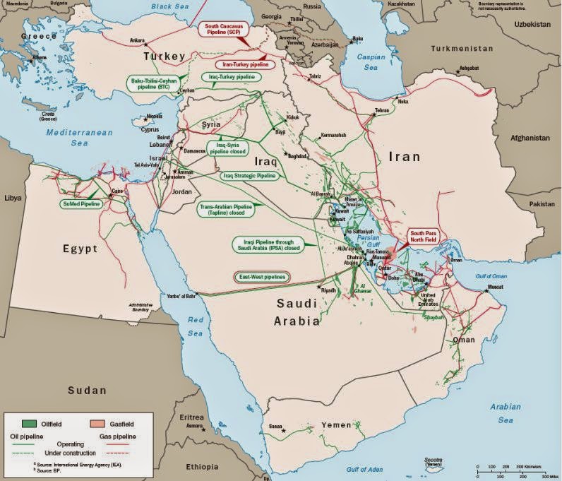 U pozadini financiranja sukoba u Siriji provlači se još jedan motiv koji se ne spominje često u javnosti. Katar i Iran imaju ogromne zalihe zemnog plina u Perzijskom zaljevu. Objema državama u interesu je plasirati svoj plin na Mediteran. Najbolja šansa za to jest plinovod koji bi vodio do Sirije. Logika se nameće sama – Katar je u posljednjih nekoliko godina postao veliki financijer islamističkih skupina po Bliskom istoku, kao što je i počeo širiti utjecaj po svijetu među muslimanskim zajednicama, primjerice financirao je novu džamiju u Rijeci. Također je nedavno došao do dogovora s Pakistanom teškog nekoliko desetina milijardi dolara kojim Katar Pakistanu jamči isporuku vlastitog plina, iako je Pakistanu jeftinije kupovat iranski plin. Amerikanci su tu odradili svoju ulogu pritišćući Pakistan da ode skupljim putem kako bi se napravio dodatni diplomatski pritisak na Iran. Opet, s druge strane, izgleda da su pregovori Irana sa zapadom po pitanju njihova nuklearnog programa urodili plodom te da će se sankcije SAD-a smanjiti ili maknuti. Time je SAD nastavio politiku udobrovoljavanja donedavnih strogih neprijatelja, slično kao i s Kubom. Izgleda da SAD počinje ciljati na vanjskopolitičku doktrinu gdje prljave poslove za njih odrađuju lokalni šerifi, dok oni samo prodaju oružje zaraćenim stranama i onako dirigentski mašu štapićem iz fotelje te tu i tamo, kada situacija to baš zatraži, uprljaju ruke. Zanimljivo će biti vidjeti hoće li Hillary Clinton nastaviti tu Obaminu politiku deeskalacije sukoba ako ga naslijedi 2016. godine. S druge strane političkog spektra, gotovo je sigurno da će republikanski kandidat u slučaju pobjede na predsjedničkim izborima odabrati neku klasičniju, siledžijsku doktrinu.