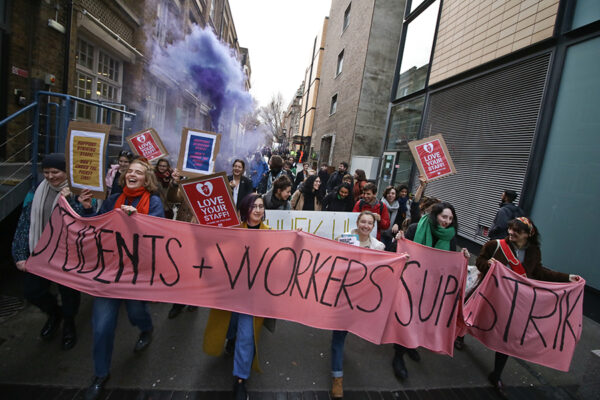 "Sveučilištima je 2010. godine smanjeno financiranje i rečeno im je da zarade novac na druge načine. Nakon toga su se otvorila privatnim investitorima koji su željeli ostvariti profit u polju visokog obrazovanja. Školarine su porasle na nevjerojatnih 9250 funti godišnje. U međuvremenu, u istom se razdoblju sveučilišno osoblje suočilo sa smanjenjem plaća od 20 posto, kada to uskladimo s inflacijom. Komercijalizacija obrazovanja izravna je posljedica kapitalizma. Umjesto da ulažu u osoblje i pristojne usluge za studente, sveučilišne uprave više brinu o ostvarivanju profita. Borbu na kampusu za bolje plaće i protiv outsourcinga trebalo bi pretvoriti u borbu protiv neizabranih birokrata koji ne odgovaraju nikome, te za sveučilišta oslobođena profita."